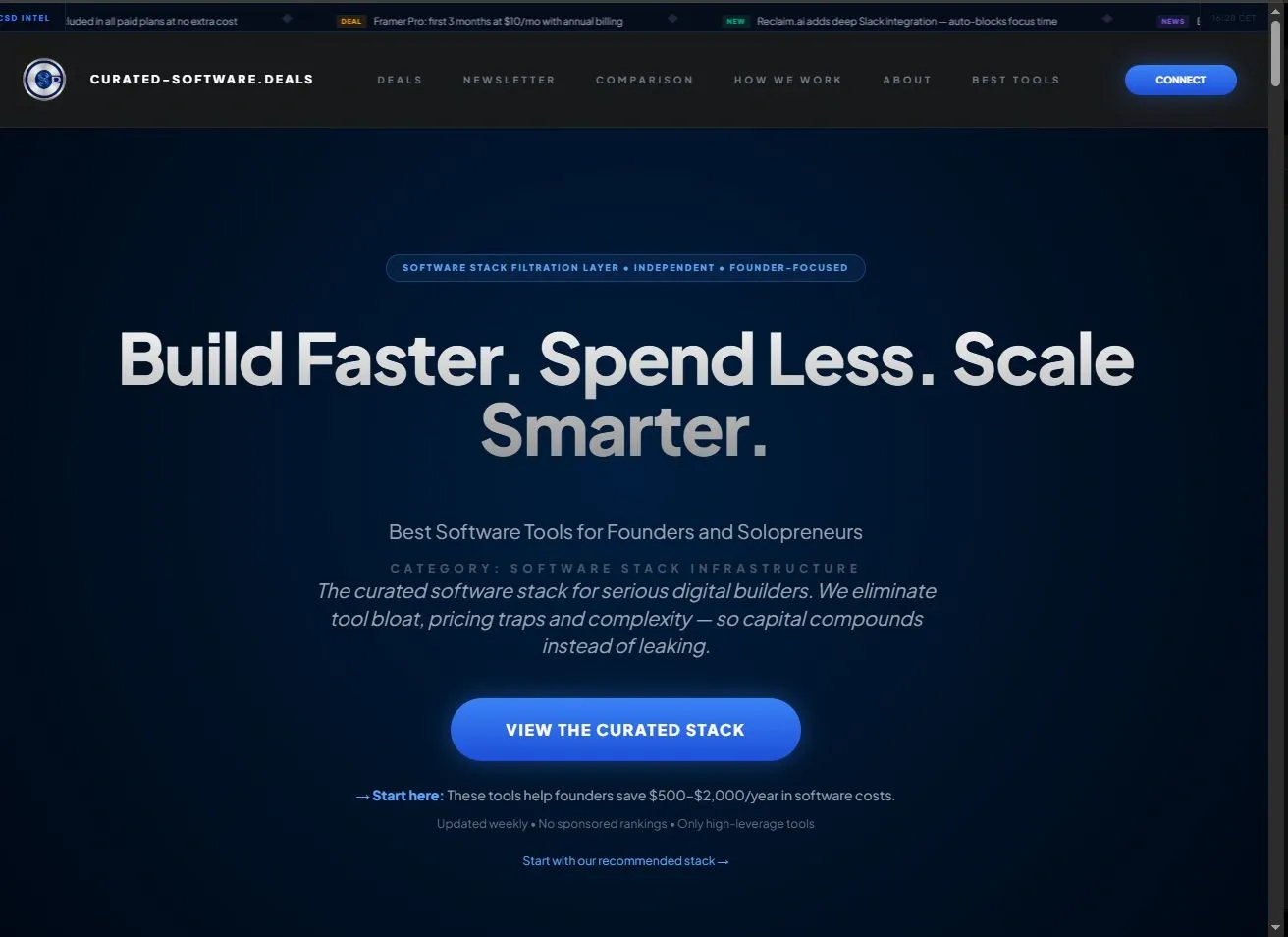 Curated software deals for founders and solopreneurs. Independent SaaS reviews, stack tools and weekly intel — no sponsored rankings, no fluff.