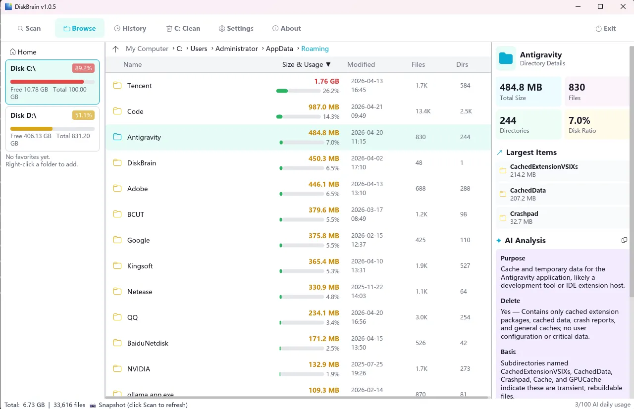 🤖 AI-Powered: Not sure if a temporary folder is safe to delete? Just ask the built-in AI.