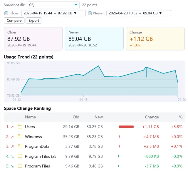 ⏳ Time-Aware: You can take snapshots to see exactly how your disk changed over time.