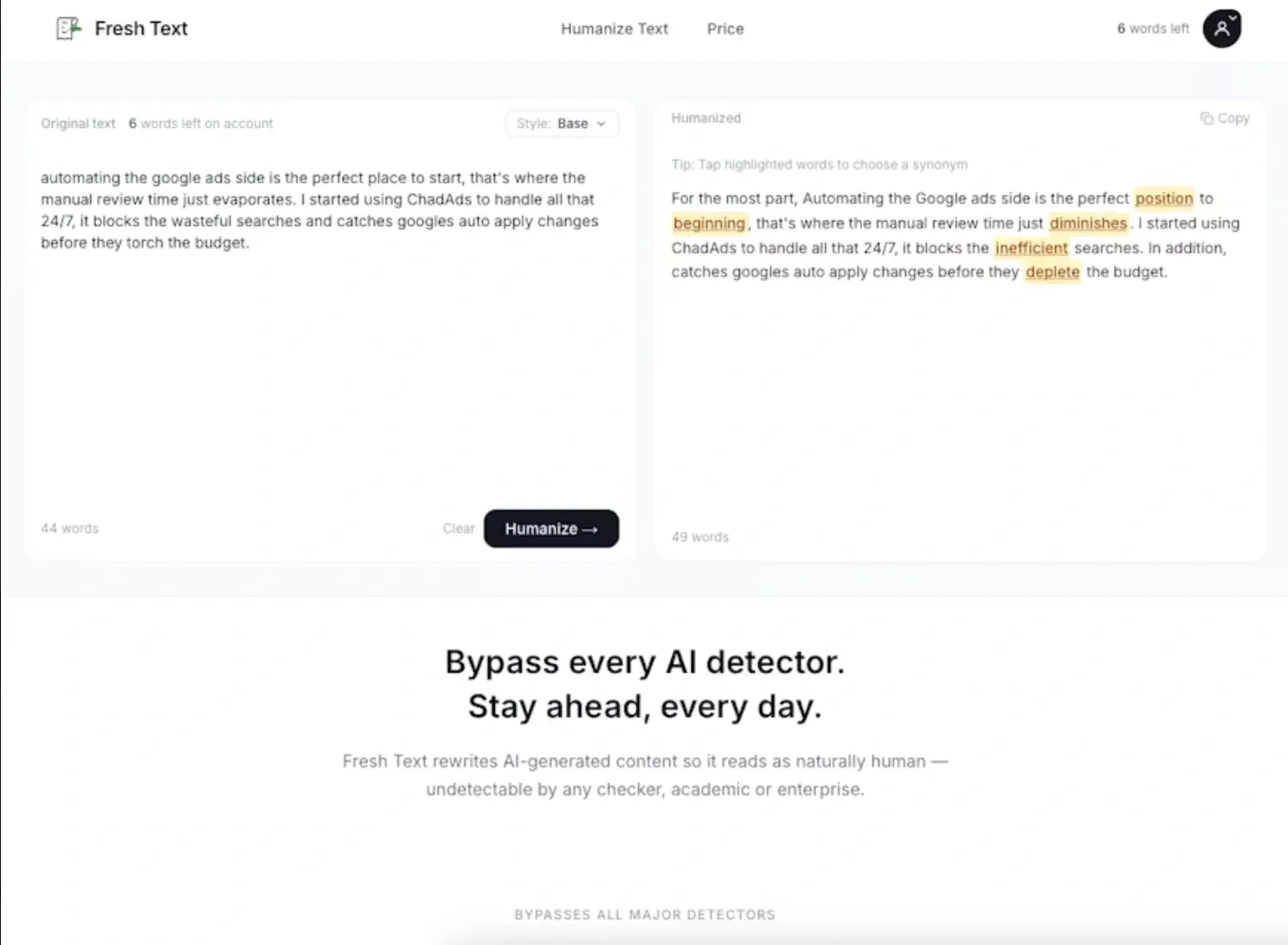 fresh-text.comFresh Text — AI Text Humanizer Preview
