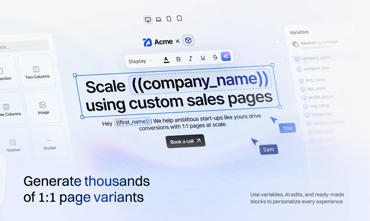 We help marketing and GTM teams create relevant website experiences at scale for every ad, keyword, or target account - converting more traffic into pipeline and revenue.