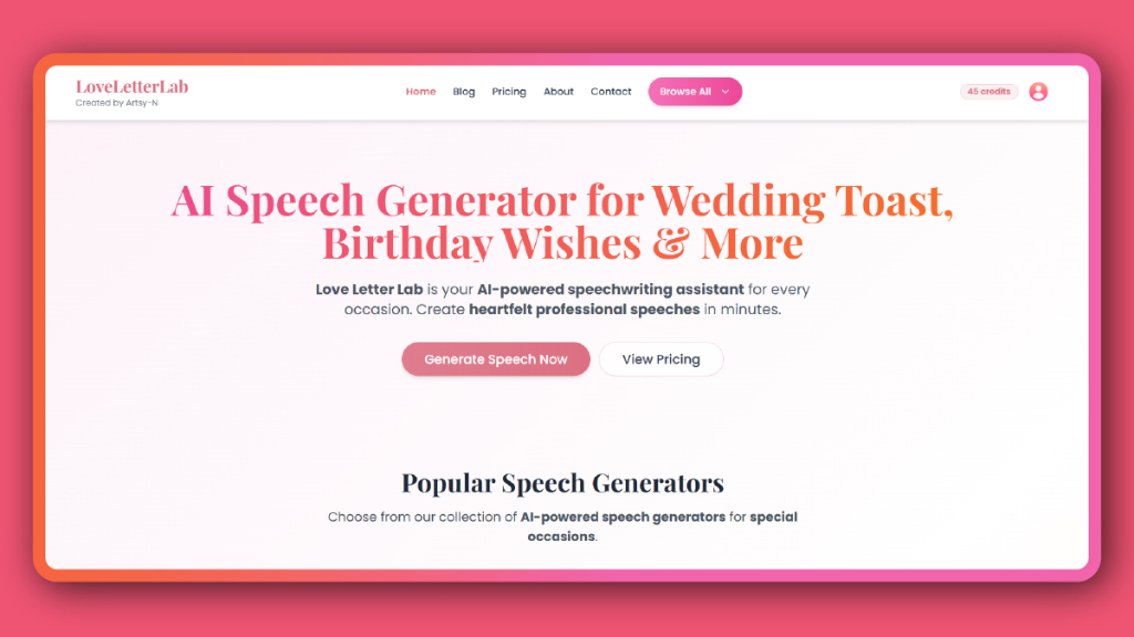 ๐๐จ๐ฏ๐๐๐๐ญ๐ญ๐๐ซ๐๐๐.๐๐จ๐ฆ โ AI Speech Generator for Wedding Toast, Birthday Wishes & More