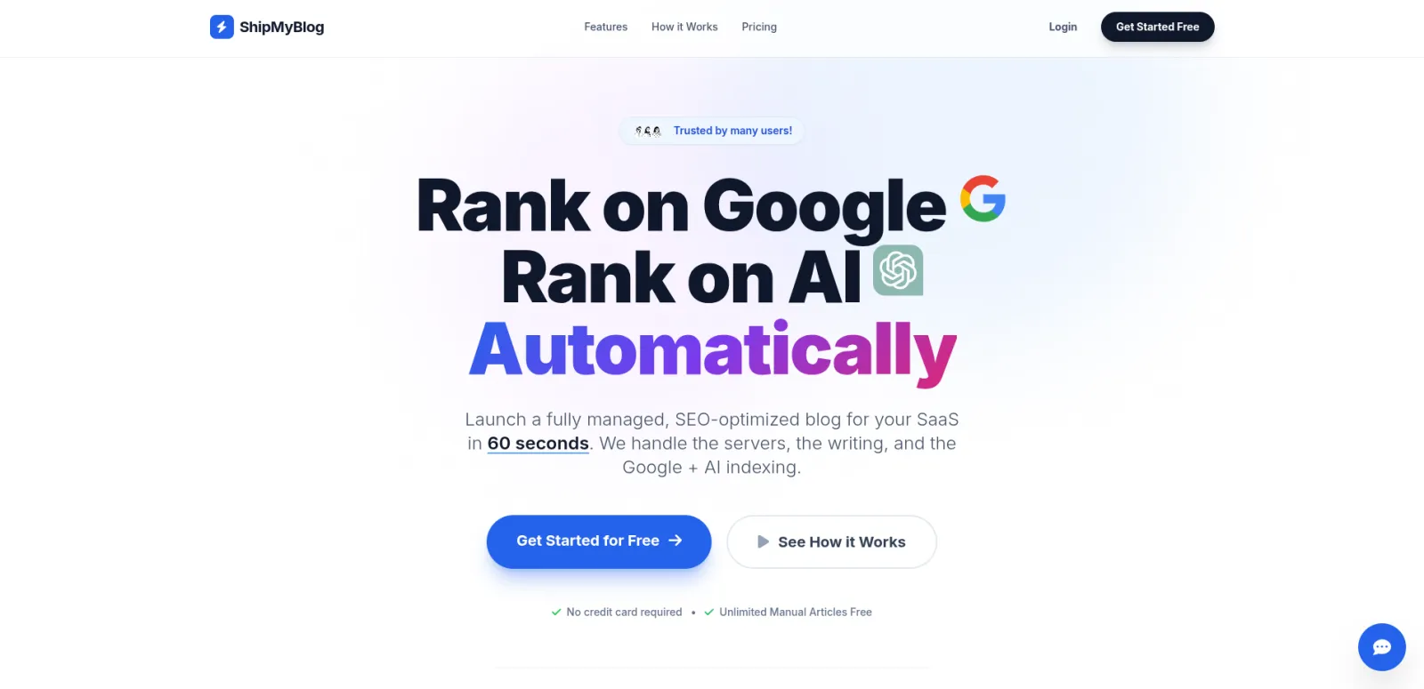ShipMyBlog – Automated Blog is a ai & ml tool listed on CodeTrendy, available at shipmyblog.com. Added in 2026. Launch a fully hosted, AI‑written blog in under 60 seconds. No WordPress. No plugins. No writing.