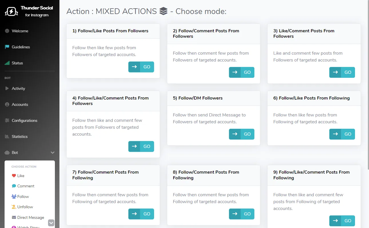 Thunder Social is a smart assistant for your Instagram accounts that interacts with your targeted audience and boost your popularity in just a few clicks!