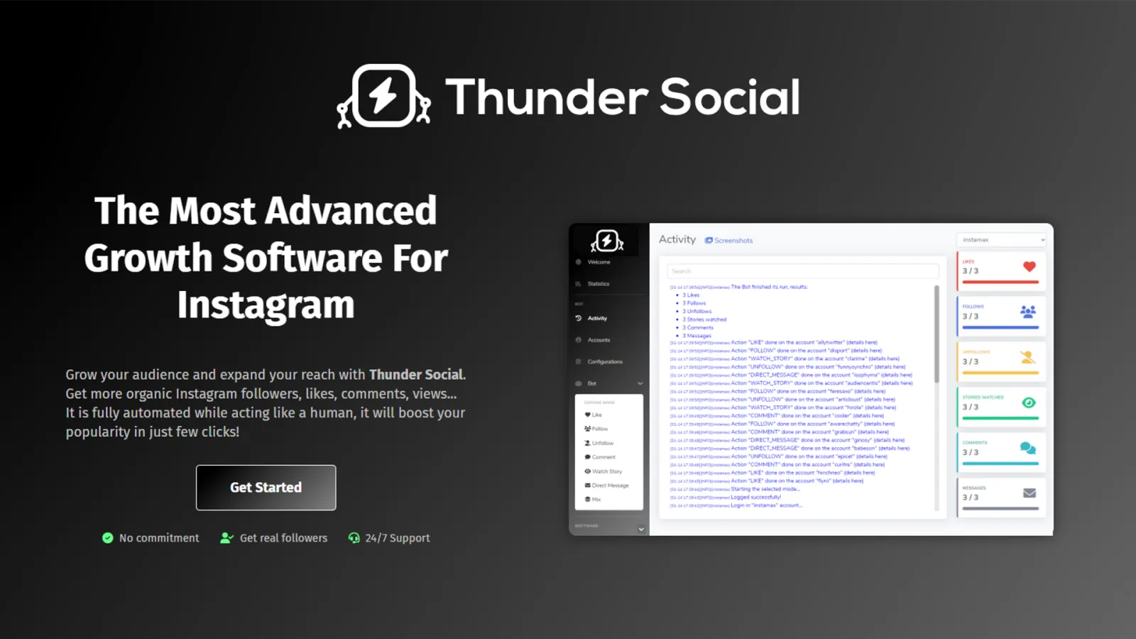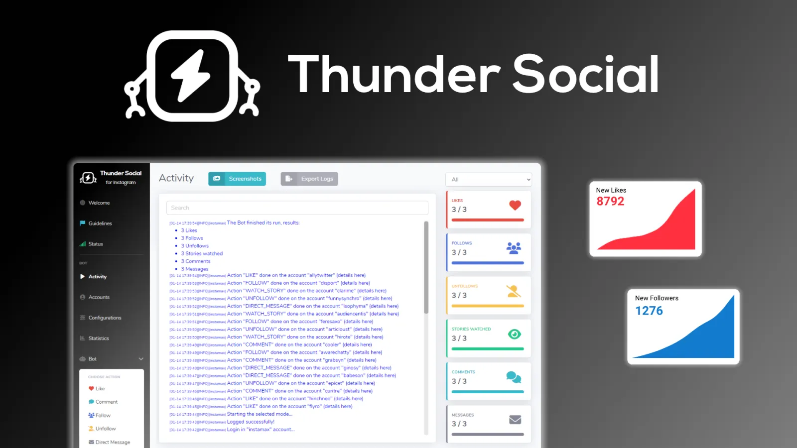 Thunder Social is a smart assistant for your Instagram accounts that interacts with your targeted audience and boost your popularity in just a few clicks! You will get real Instagram followers, likes, comments, views... Grow your audience and expand your reach in no time, start your journey now!