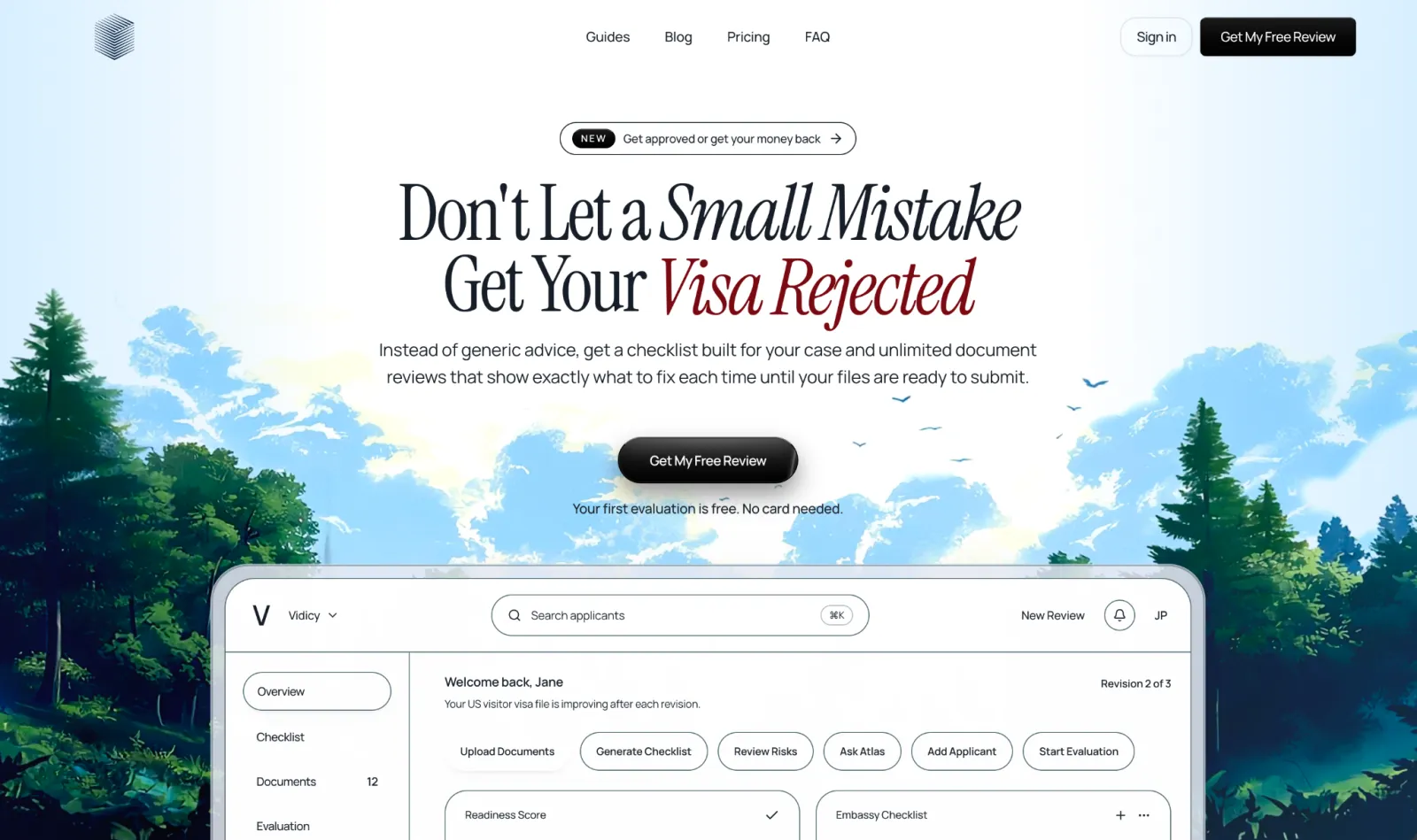 Get visa document review with embassy-specific checklists, risk scoring, and guidance that helps you catch missing or inconsistent evidence before submission.