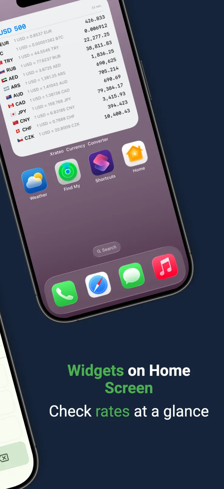 Check your favorite exchange rates right from your home screen — no need to open the app.
